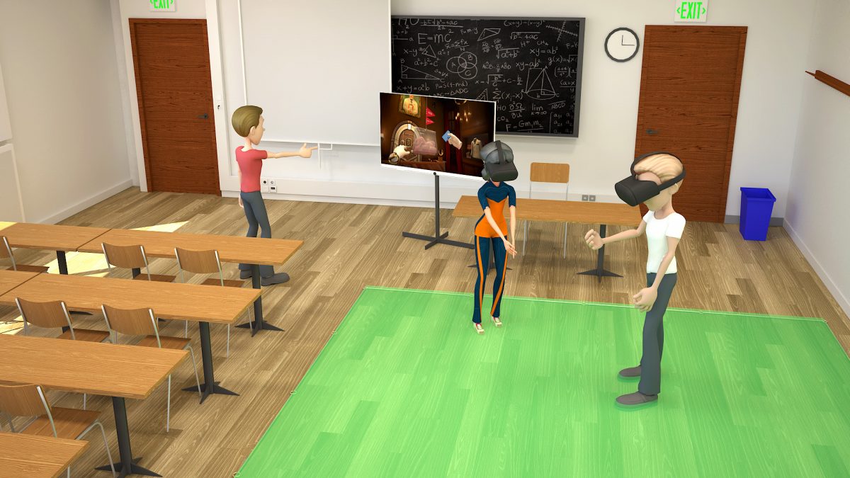 By using latest virtual reality technology, idea is to place students into a virtual situation where they need to solve a problem related to the specific subject. Students would put on a VR headset and find themselves in a classroom they need to escape. In order to do that there would be a number of puzzles they would have to solve. Puzzles would be designed according to the specific subject (geometry, physics, chemistry, geography to name a few) to test students knowledge and learn how to use it in real life. For example, students would play in teams in the same virtual scenario and will have to find puzzles with specific shapes, build a prism out of them and place it to specific location which will refract the laser beam light pointing to the next task location. In this scenario students will have to think out of the box and come to an idea to turn on laser beam first. Next task could be from chemistry area where they will have to use water for specific interaction. Without having water in the scene they will need to come to solution and build it from two hydrogen atoms bonded to an oxygen atom which can bring physics assignment in the form of a chain reaction game. Possibilities are limitless and scenarios would be created by teachers and VR professionals in short term joint staff training events.